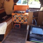 Ce combi a été équipé d’un panneau solaire et d’une batterie lithium auxiliaire afin de faire fonctionner son frigo, recharger les téléphones et autres. Il dispose d’une gazinière amovible. Les meubles de ce van sont + modulables que les Westfalia. Vous pouvez les sortir si besoin mais peut être un peu moins de rangements que dans les westfalias super-optimisés.