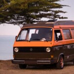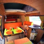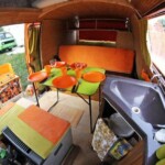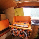 Louez un van vintage racé et aménagé de façon pratique pour la vie de 4 à 5 personnes.