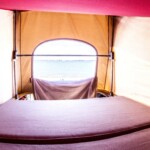 - Un couchage enfant à l’avant. Le cinquième couchage est un système d’origine d’époque : une toile tendue au dessus des sièges conducteurs et passager qui amuse toujours les enfants (10ans maximum pour ce couchage).